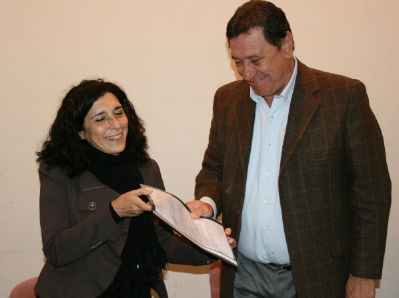 A continuación, la Secretaria de Municipios y Comunas de la provincia, Licenciada Mónica Bifarello, entregó al intendente, Leandro Chamorro, la resolución 309/11, donde dice en su artículo primero que concede la suma total de pesos 350 mil, en concepto de aporte no reintegrable, destinado a la compra del cargador frontal con retroexcavadora.