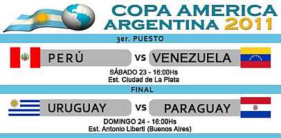 Este fin de semana termina adminypunto hace 14 años COPA AMERICA – Se juegan este sábado las finales de la Copa América. Por el tercer puesto se enfrentan Perú con Venezuela y el domingo la gran final, Uruguay con Paraguay.