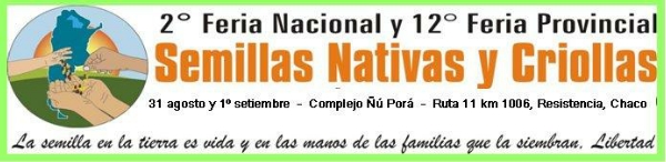 SUB SECRETARÍA DE AGRICULTURA FAMILIAR – La Comisión Organizadora de la 2º Feria Nacional de Semillas Nativas y Criollas informa que, debido a razones organizativas, la misma se realizará los días miércoles 31 de agosto y jueves 1º de setiembre, en el Complejo Ñú Porá, de Resistencia, Chaco.Se mantiene el mismo programa, con los talleres respectivos y los eventos culturales planificados. Rogamos sepan disculpar este imprevisto cambio de fecha.