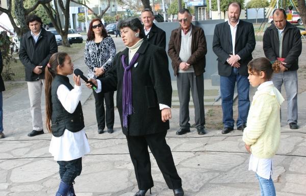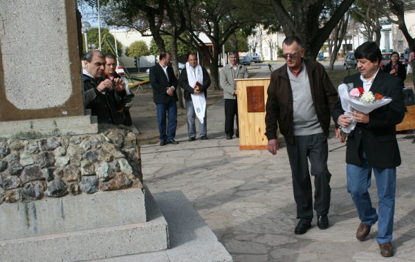 Sseguidamente se entonaro las estrofas del Himno nacional argentino, para luego, el Secretario de Obras Públicas, Santiago Pepermans y el Secretario de Gobierno, Eduardo José, depositaron en el monumento al General San Martín, una ofrenda de gratitud, simbolizadas en un ramo de flores.