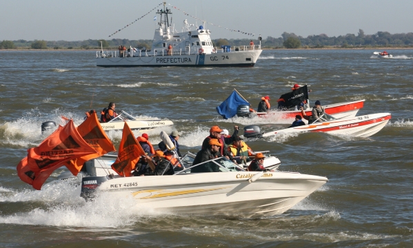 48º Fiesta Nacional del Dorado de Paso de la Patria – Minutos antes de las 10 de la mañana de este domingo 21 de agosto, un total de 257 embarcaciones salieron al río en busca del ansiado Tigre del Paraná. Un día soleado acompañó a los más de setecientos pescadores, quienes con la ilusión de capturar un dorado, partieron raudamente hacia su lugar preferido dentro de la cancha de pesca.Los amantes del deporte del silencio pescaron hasta las 16 horas, momento en que debieron regresar hasta el parque cerrado de embarcaciones finalizando la edición 48 del tradicional torneo.