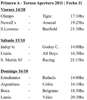 Se juega la 11ª Fecha de AFA