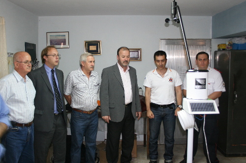 VILLA OCAMPO – En el Cuartel de Bomberos Voluntarios, oficiaron la presentación de la estación meteorológica adquirido por la Subsecretaría de Protección Civil, dependiente del Ministerio de Seguridad de la Provincia, a instalarse en nuestra ciudad; y que forma parte del Sistema de Alerta Temprana ante Fenómenos Meteorológicos.El acto se realizó en la jornada de este martes en horas de la mañana y en la misma estuvo el Subsecretario de Protección Civil de la provincia, Walter Albornoz, acompañado por el Lic. Gonzalo Saglione, Subsecretario de Proyectos de Inversión y Financiamiento Externo, como así también, Daniel Rodriguez, representando a la empresa proveedora de la estación meteorológica, acompañados por los integrantes de la comisión de Bomberos Voluntarios, como así también el intendente Enrique Paduán y parte de su gabinete municipal.