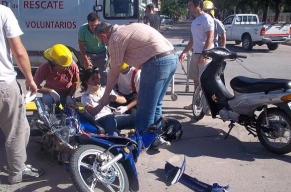 VILLA OCAMPO – A primera hora de la tarde, 16,30 horas aproximadamente de este viernes, se tocaron dos motos,resultando con lesiones leves una jóven que venía a bordo de uno de los rodados, siendo auxiliada por Bomberos Voluntarios.Un accidente más, en este caso las protagonistas fueron dos motos de 110 cc., que colisionaron en la intersección de Av. San Martín y Tibaldo. El jóven conductor de la moto es oruindo del paraje Las Mercedes y sería Claudio Mesa, en tanto, la jóven que resultó lesionada es de apellido Brac, dolorida y bajo una crisis de llanto, producto del choque.