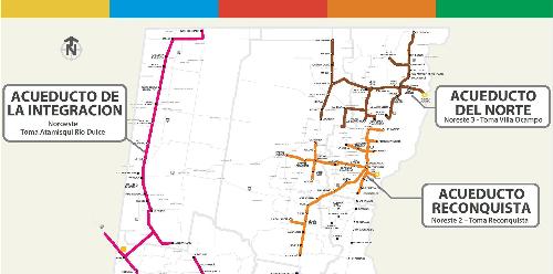 Los 12 acueductos proyectados son: Acueducto de La Ribera -Toma Timbúes; Acueducto del Gran Rosario – Toma Granadero Baigorria; Acueducto del Sur – Toma Fighiera; Acueducto Desvío Arijón – Toma Desvío Arijón; Acueducto Río Coronda – Toma Coronda; Acueducto Centro Santafesino – Toma Monje; Acueducto San Javier – Toma San Javier; Acueducto Helvecia – Toma Helvecia; Acueducto Reconquista – Toma Reconquista; Acueducto del Norte – Toma Villa Ocampo: Acueducto de la Integración – Toma Atamisqui Río Dulce: y Acueducto de la Costa – Toma Colastiné.