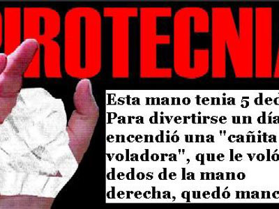 Por último Stettler, advirtió que el uso indebido de la pirotecnia es lo que provoca los accidentes, y no fallas de los productos, aunque la mejor prevención para que no sucedan quemaduras por uso de fuegos artificiales es evitar la utilización de los mismos.