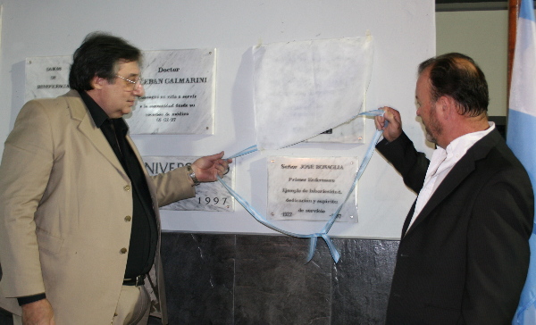 A continuación, descubrieron una placa el director del hospital, Daniel Catalani y el intendente Enrique Paduán. Luego, cortaron la cinta también del laboratorio que llevará el nombre «Dr. Edison Nicolas Porcile», con la presencia de la hija, Yolanda Porcile, Dr. Daniel Catalani y Enrique Paduán, intendente.