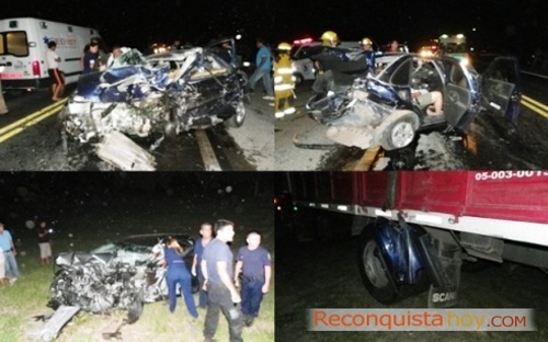 RECONQUISTA – EN LA CURVA DE LA III BRIGADA AÉREA SOBRE RUTA 11 – Violento choque en la curva de la III Brigada Aérea de Reconquista, sobre ruta 11. Producto del impacto falleció Rafael «Coco» Sanchez y Daniel Fluck de Las Toscas. El impacto fue de frente con un vehículo Honda City. Ha fallecido un amigo.De acuerdo a los primeros testimonios, uno de los automovilistas se adelantó a un camión en plena curva encontrándose de frente con el otro vehículo. La ruta permanece cortada.