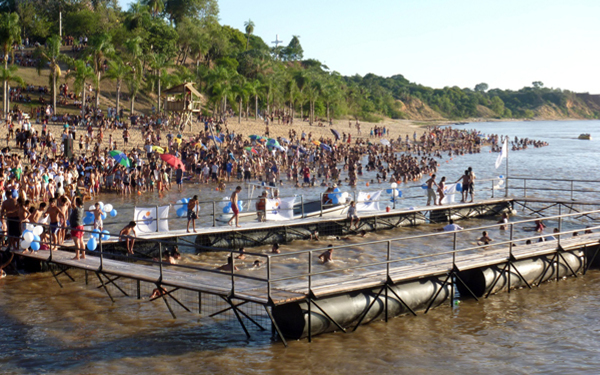 EN BELLA VISTA, CORRIENTES – La intendente Nancy Sand y su gabinete de gobierno inauguraron una pileta flotante ubicada en el balneario municipal. La estructura construida por el personal municipal, única en el interior provincial, será de uso público y gratuito para la comunidad.El acto se llevó a cabo en la tarde del domingo ante una multitud que como de costumbre asistió al balneario municipal.