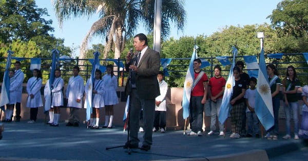 Al momento del discurso oficial el intendente hizo alusión a los colores celeste y blanco y el sol en la Bandera, resaltando la excelentísima figura de Manuel Belgrano, su lucha y la visión de futuro que ya tenia Belgrano en aquella época. «La bandera nos convoca siempre, nos hace vibrar, esta en cada rincón del país, en cada ciudad, pueblo o paraje y la buscamos cuando estamos afuera, porque siempre nos hace sentir en casa», destacó.