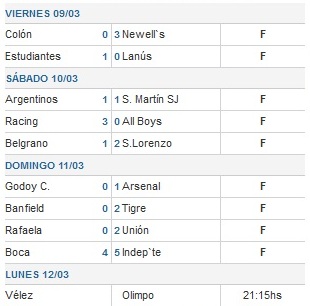 Resultados de la 5ª fecha