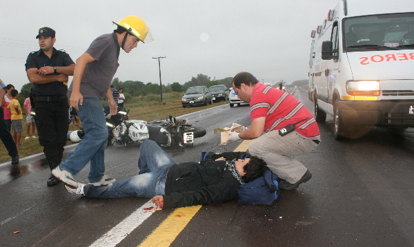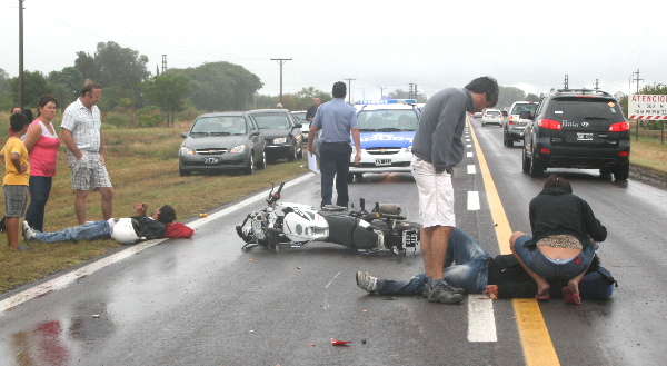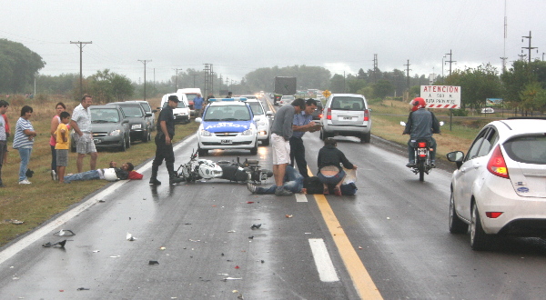 VILLA OCAMPO – Dos motocicletas que se dirigían hacia la misma dirección generaron un corte de ruta como consecuencia del choque, que terminaron tirados sobre la ruta nacional 11, altura de la EFA de Villa Ocampo. Sucedió sobre el mediodía de este jueves.Al parecer, Nicanor Rodríguez, de 62 años de edad, venía en moto desde Las Mercedes y al llegar al B° EFA, lugar ubicado frente a la Escuela de la Familia Agrícola, sobre ruta nacional 11, a un km. para ingresar a ruta provincial 32, pretende entrar a su domicilio, ubicado hacia el oeste de dicha ruta, en el Barrio conocido como EFA, barrio que se ubica en forma paralela a la 11, sin percatarse que detrás venía otra motocicleta, Gilera de 200 cc, dominio IFB 607, conducida por Horacio  Fernández (21) y como acompañante, su hermano Juan Domingo Fernández (28), ambos con domicilio en Capital Federal y en tránsito por la citada ruta, rumbo a Roque Saenz Peña (Chaco), quién termina impactando en el medio de la motocicleta de Don Nicanor, una Mondial de 110 cc, sin patente, produciéndose el corte de ruta como consecuencia del impacto, ya que los cuerpos quedaron sobre el pavimento.