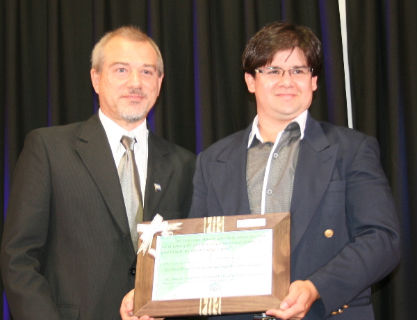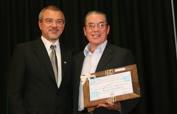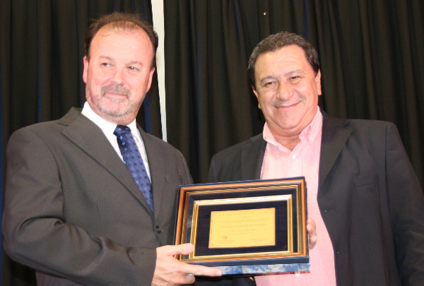 El intendente de la ciudad de Las Toscas, Leandro Chamorro hizo entrega de una plaqueta a Enrique Paduán por los festejos del cincuentenario de la declaración como ciudad a Villa Ocampo.