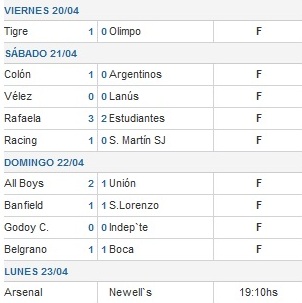 Resultados de la 11ª Fecha