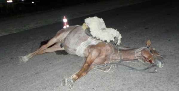 VILLA OCAMPO – El auto que circulaba por Ruta 32, se llevó por delante al caballo, que muere al instante. El único lesionado fue el hombre que venía en el caballo, de unos 70 años, quien fue trasladado al SAMCO local con varias fracturas.El choque ocurrió alrededor de las 5,40 de este sábado cuando el Renault 9, RUV 668, guiado por Omar Dante Yoris, de 51 años, circulaba hacia el Este cuando al llegar a la intersección con uno de los ingresos al barrio Los Amores, impactó contra el equino de Félix Godoy de 70 años, en el momento que éste cruzaba perpendicularmente la ruta.