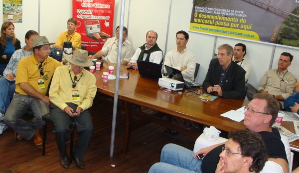 EN SANTA ROSA, BRASIL – El Intendente de Avellaneda, CPN Dionisio Scarpín, junto al Secretario de Producción y Desarrollo, Ing. Hugo Bernardis, el Presidente de la Unión Agrícola de Avellaneda, Héctor L. Braidot y Hugo Quarín, participáron de «Fenosoja 2012», 19ª Exposición nacional de la Soja en Santa Rosa, RS, Brasil.La misma tuvo lugar del 26 de Abril al 06 de Mayo de 2012 en el Parque de exposiciones de Alfredo Carlson.