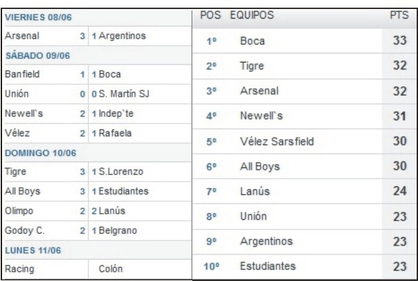 Deportes Resultados 17ª Fecha 11 junio, 2012 Compartir en Facebook Compartir en Twitter tweet NACIONALES – FUTBOL ARGENTINO –