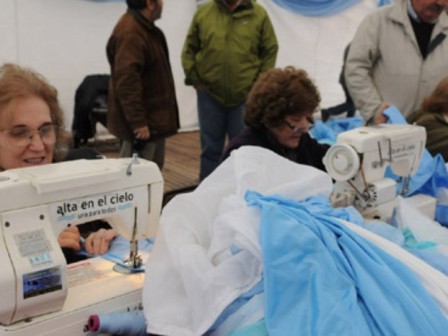 Esta vez una verdadera multitud acudirá a portar Alta en el Cielo, el larguísimo pabellón nacional que empezó a fabricarse hace 13 años, en un principio por rosarinos y luego por ciudadanos de todo el país.