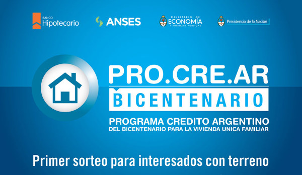 NACIONALES – El 20 de julio se realizará el primer sorteo del programa de créditos para viviendas PRO.CRE.AR BICENTENARIO. Se realizará a través de Lotería Nacional. Previamente, las personas que ya poseen un terreno deberán completar el “Formulario de Inscripción” en la página web de ANSES.El 20 de julio se realizará el primer sorteo del programa de créditos para viviendas PRO.CRE.AR BICENTENARIO, tal como lo anunciara la Presidenta de la Nación, Cristina Fernández de Kirchner.