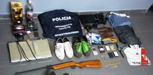 Los objetos robados estaban en poder de los acusados y en una vivienda del puerto. El robo había sido cometido en la madrugada del lunes 9 de julio de 2012 y lo que le habían robado, entre otras cosas fueron varios elementos de joyería (cadenitas, medallas, aros, anillos, reloj, etc) – (01) Celular – (01) reloj – (02) pares de zapatillas – (01) rifle de aire comprimido – (01) billetera con 190 pesos y botellas de bebidas.