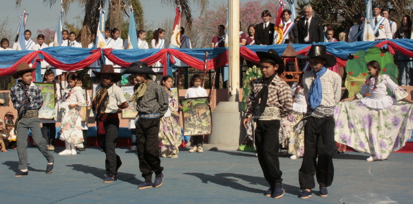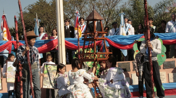 También, alumnos de establecimientos educativos, efectuaron números alusivos a la gesta fundadora de Gaspar Kauffman y Antonio Tomassone, quienes fundaron esta ciudad un 23 de agosto de 1880.