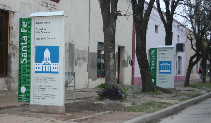 VILLA OCAMPO – El Área de Turismo, perteneciente a la Secretaría de Hacienda y Producción Municipal, recibió y están instaladas las cartelerías turísticas que compone el proyecto de señalética, que fuera presentado ante el Ministerio de Turismo de la Nación.Román Murzyla, titular del área, informó: “Los carteles ya están instalados. Hay carteles que van a estar dentro del casco urbano, indicando los lugares históricos o atractivos turísticos (plazas, museos, Casa de Visitas del Ingenio Arno, en el sector de acceso a la ciudad, etc.); y otros carteles que se instalan camino al río”.