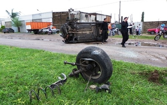 Ahí se produce el vuelco y va derrapando con el costado derecho del auto que pegó contra el cordón del cantero central, luego contra una columna de iluminación, luego chocó una palmera a la que arrancó totalmente y finalmente volvió a la calzada donde quedó tumbado con las ruedas de costado. El auto se destruyó. Es un Fiat Siena matricula FTO 401.