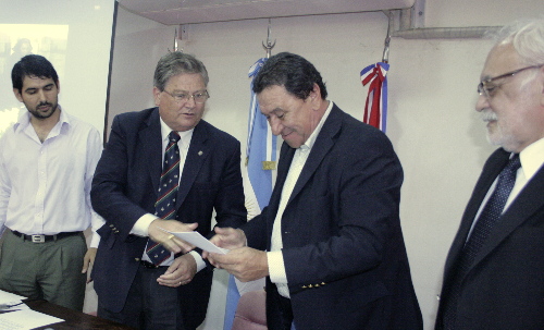 A continuación, el Ministro de la Producción, hizo entrega al Intendente, un aporte de 48.000 pesos, destinados a la atención de gastos corrientes para la puesta en funcionamiento del Centro de Recepción Turistica Regional, y de la resolución Nº 459/2012 mediante la cual, se le asigna a la municipalidad otro aporte de 140.000 pesos, destinados a construcción de infraestructura en la zona de costa de la ciudad.