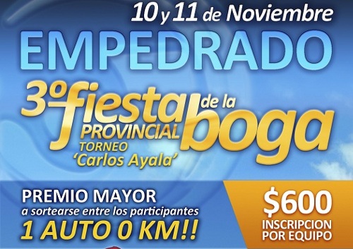 EMPEDRADO – CORRIENTES – La 3° Edición de la Fiesta Provincial de la Boga se realiza este próximo fin de semana en la localidad correntina a orillas del río Paraná.Durante el fin de semana del 10 y 11 de noviembre el mundo de la pesca deportiva se trasladará a Empedrado, conocida como la Perla del Paraná. Las barrancas naturales serán anfitrionas de cientos de pescadores, que buscarán revalidad el éxito de las dos ediciones anteriores. Vale agregar que el presente torneo lleva el nombre del recordado periodista en turismo y creador de Chamigo Producciones, Carlos Ayala.