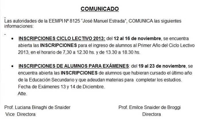 sociales Abiertas las inscripciones 12 noviembre, 2012 Compartir en Facebook Compartir en Twitter tweet EEMPI N° 8125 «JOSÉ MANUEL ESTRADA» – LAS TOSCAS –