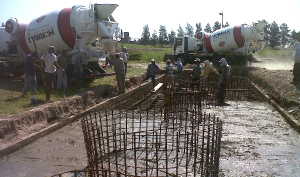 Se entregaron 170 M3 de hormigón, siendo que el primer camión comenzó a descargar a las 11:50 am y el ultimo a las 16:35, en un tiempo récord, donde Hormax Hormigones trajo de la vecina ciudad de Reconquista, 2 camiones con capacidad de 12 m3 para que el trabajo sea mas rapido.