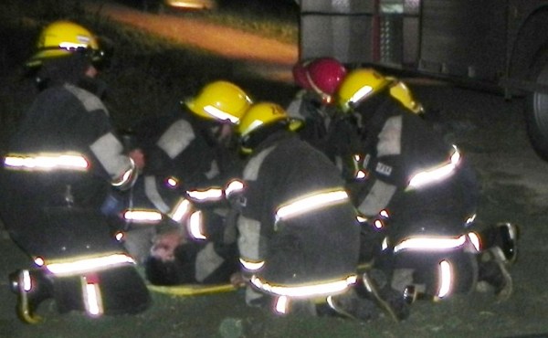 Los Bomberos Voluntarios, con la Autobomba nueva, comenzaron a desplegar las mangueras y a realizar su trabaja. A los pocos minutos llegó la autobomba más vieja y, cuando quisieron detenerla, fallaron los frenos e impactó en la parte trasera de la otra autobomba, no sin antes recibir un fuerte golpe en una de sus piernas Manuel “Paco” Fernández, uno de los bomberos voluntarios.