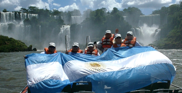 2ª EXPEDICIÓN MESOPOTAMIA DESDE CATARATAS DEL IGUAZÚ – La 2° Expedición Mesopotamia “Para Empezar a Educarnos” comenzó en las Cataratas del Iguazú este 23 de enero como estaba previsto.El equipo integrado por Sergio Zajarevich y Luis Bedoya en el apoyo logístico por tierra y Nélson Gómez, Jorge Vassel, Matías Andrian y Alberto Andrian en la embarcación, se dirigieron a la zona del Parque Nacional Iguazú para realizar el tradicional bautismo bajo las cascadas de las cataratas. Portando la bandera nacional a bordo de la embarcación de Iguazú Jungle, se sumergieron totalmente bajo una espectacular cortina de agua bautizando así a la tripulación que será la encargada de navegar más de 1800 km por el río Paraná para llegar a Tigre.