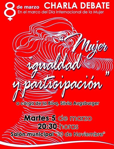 Dicha actividad, a desarrollarse en el marco del Día Internacional de la Mujer y con la adhesión de la Municipalidad de Villa Ocampo, se llevará a cabo el día martes 5 de marzo a las 20:30 horas, en el salón municipal 30 de Noviembre.