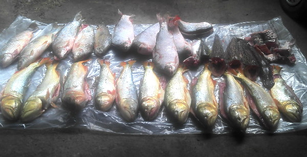 Advirtiendo personal de “Los Pumas”, el dudoso estado de conservación de los mismos, por lo que de inmediato se solicitó la intervención de un facultativo, para el análisis adecuado, quien dispuso la desnaturalización de dichas especies ictícolas ya que las mismas se encontraban No aptas para consumo humano. Se labra Infracción a la Ley Pcial. Nº 12.212 y Nº 12.722.Interviene Secretaría de Recursos Hídricos, Forestal y minero (of. Caza y Pesca) dependiente del Ministerio de la Producción de la Ciudad de Santa Fe.