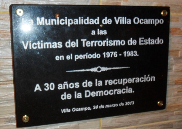 Y agrego “Lo que si pensamos es que es un año especial a 30 años de la recuperación de la democracia y pensamos que que es una fecha que nos unifica a todos los argentinos, santafesinos y ocampenses y en este sentido queríamos dejar plasmado en una placa en esta plaza, que es de todos y como un homenaje a las víctimas del terrorismo de estado, porque el terrorismo no conoció limites, fronteras ni diferencias ideología”.-