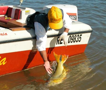 PASO DE LA PATRIA – CORRIENTES – La Federación Correntina de Pesca, organismo encargado de la fiscalización, dio a conocer a los ganadores del XIX° Torneo de Pesca del Dorado con Devolución que se desarrolló en esta jornada de domingo en la villa turística de Paso de la Patria.La pieza mayor fue capturada por Helio Gilberto Fusco, oriundo de San Pablo, Brasil con un dorado de 98 centímetros. En tanto que el equipo mejor clasificado resultó el N° 25 integrado por Daniel y Roberto Montaña y Adolfo Molina, de la provincia de Buenos Aires.