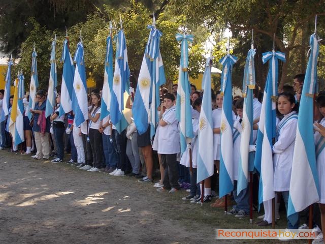 La entonación del Himno Nacional Argentino y el Himno a Reconquista sirvieron como perfecta antesala al tradicional cambio de abanderados, responsabilidad que será ejercida a lo largo de un año calendario por: la Asociación Española de Socorros Mutuos, la Sociedad Italiana y el Coro Polifónico Municipal “Profesor Dionisio Cantero”.
