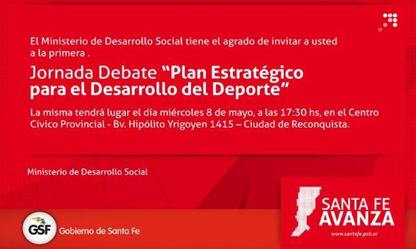 REGIÓN I – NODO RECONQUISTA – Se invita a todos los clubes e instituciones deportivas a una Jornada Debate para el “Desarrollo Deportivo de la Provincia”, a llevarse a cabo este miércoles 8 de mayo, a las 17:30 horas en la sede del Nodo Reconquista.La Secretaría de Cultura y Deportes de la Municipalidad de Villa Ocampo invita a todos los clubes e instituciones deportivas a una Jornada Debate para el “Desarrollo Deportivo de la Provincia”, a llevarse a cabo hoy miércoles 8 de mayo, a las 17:30 Hs. en la sede del Nodo Reconquista.