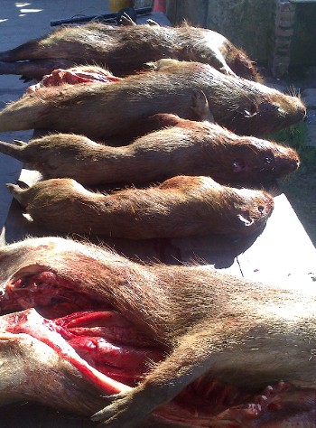 Personal de la sección Nº 9 de la D.G.S.R., en momentos en que realizaban patrullajes preventivos por zona rural de la localidad de Florencia, camino de acceso a Puerto Piracuá, interceptaron un automóvil Peugeot 504, remolcando una embarcación, en el que se trasladaban dos personas, domiciliadas en Las Toscas, lográndose constatar en el interior de la embarcación una escopeta cal. 16, un reflector y siete carpinchos (animales silvestres protegidos);