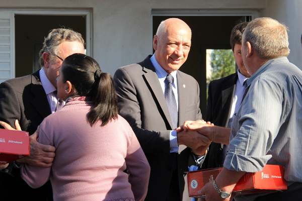 EN LANTERI – El gobernador Antonio Bonfatti entregó 18 viviendas en la localidad de Lanteri. Las mismas fueron ejecutadas a través del programa de lotes propios y demandaron una inversión del Ejecutivo provincial de 1,5 millones de pesos.Del acto, participaron también el presidente comunal de Lanteri, Raúl Niclis; el intendente de Villa Ocampo, Enrique Paduán; el ministro de Obras Públicas y Vivienda, Julio Schneider, junto con demás autoridades provinciales y comunales y público en general.