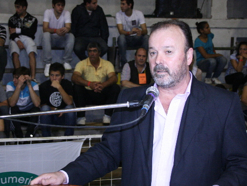 Durante el acto, vinieron la bendición del cura párroco, el discurso de Abelardo Cian, presidente de Bomberos Voluntarios, organizador del evento y por último la del intendente Enrique Paduán, dando por inaugurado el torneo interprovincial e internacional de voley.
