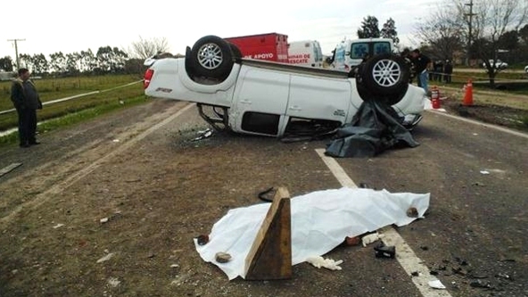 Quien conducía la camioneta, Nelly Rosa Cracogna, es esposa de Angel Tomadín. Tienen un bazar en la Ciudad de Las Toscas, desde donde regresaban hacia su casa cuando se produjo la tragedia. En principio no pudimos saber por qué la conductora perdió el control de la camioneta que mordió la banquina de su mano y de ahí desencadenó el vuelco, quedando el vehículo con las cuatro ruedas hacia arriba, en el medio del pavimento.