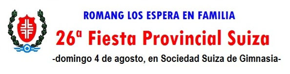 ROMANG LOS ESPERA EN FAMILIA – Este domingo 4 de agosto, en la Sociedad Suiza de Gimnasia de la localidad de Romang, se llevará a cabo la 26ª Fiesta Provincial Suiza.PROGRAMA DE ACTIVIDADES