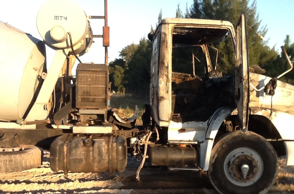 VILLA OCAMPO – Dentro del galpón de la planta hormigornera Hormax de Elías Yapur, en horas de la noche de este lunes, un camión Mercedes Benz L 1620, tomó fuego estando estacionado dentro del mismo.En diálogo con Guillermo Yapur, titular de la firma de Hormax Hormigones, nos dijo: «Queremos agradecer, en primer lugar, la rápida y eficaz tarea de nuestros colaboradores y de los Bomberos Voluntarios de Villa Ocampo, valoramos enormemente la tarea que realizaron, que permitió que solamente debamos lamentar la pérdida de una importante herramienta de trabajo, pero que felizmente no arrojó ninguna víctima ni heridos», expresó.