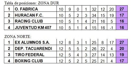 LIGA OCAMPENSE DE FUTBOL – En la zona norte finalizo el torneo clasificatorio, que determino el cuarto clasificado para el petit torneo final. Quien obtuvo ese lugar fue Boxing Club al vencer a Dep. Tacuarendi.A Pueblo Nuevo no le alzando aun venciendo a Villa Guillermina, que nuevamente dio la nota al desatarse una bataola campal agrediendo salvajemente al Sr. Suárez.