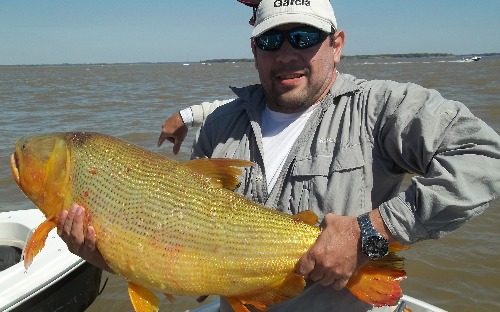 «Primero pensé que era un surubi, ya que no se mostraba como es la costumbre del dorado, pero luego de tanta lucha después de unos veinte minutos, vimos que se había enganchado del lomo del pez», relató Germán.