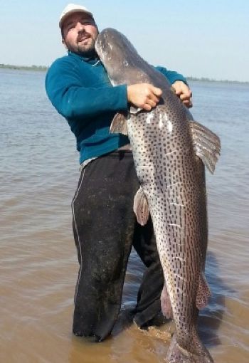EN EMPEDRADO – CORRIENTES – El pescador Santiago Razetto disfrutó la inolvidable experiencia de capturar un surubí de 70,5 kilos y 1,76 metro de longitud en la localidad de Empedrado.El esperado pique se le dio en la zona del barco hundido el sábado 17 de agosto y tras una ardua lucha pudo hacerse de la presa después de una hora. Fue llevado a la costa, medido, pesado y devuelto a su hábitat natural, según confirmó el feliz pescador.