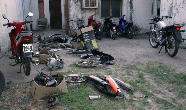 VILLA OCAMPO – La policía de Villa Ocampo logró desarticular una banda dedicada a desarmar motocicletas en el norte del Departamento General Obligado.Luego de una ardua investigación, personal de la Unidad Regional IX de policía, logro recuperar un total de 8 motocicletas, la mayoría desarmadas y logró la detención de Alexis Ever R. de 18 años, Eric Luis S. de 18 años, dos menores de 17 y uno de 15 años.