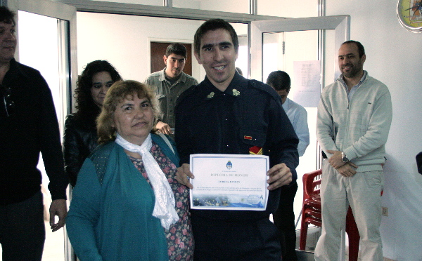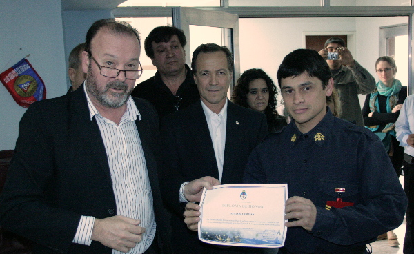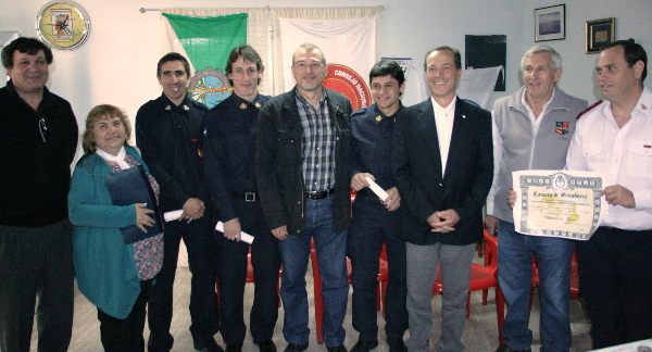 Los mismos no pudieron estar presentes durante la ceremonia, por lo que en horas del mediodía, arribó al cuartel de Bomberos de Villa Ocampo, donde fue recibido por el intendente Enrique Paduán,los concejales del FPCyS, Cueropo y comisión directiva de Bomberos de Villa Ocampo, entregando al Jefe de Bomberos Jaime el diploma y a los tres bomberos que viajaron a Rosario una copia a cada uno.
